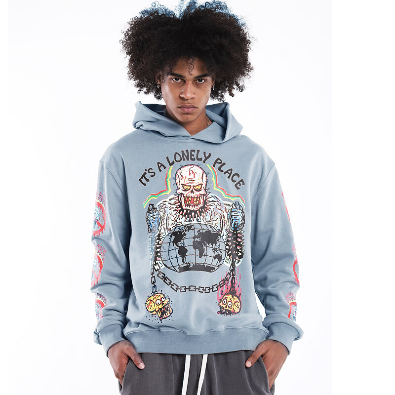 Kanye West Kanye Same Skull Devil Haunted House Graffiti Printed Hooded Sweater Men's and Women's Loose Hoodie Fashion