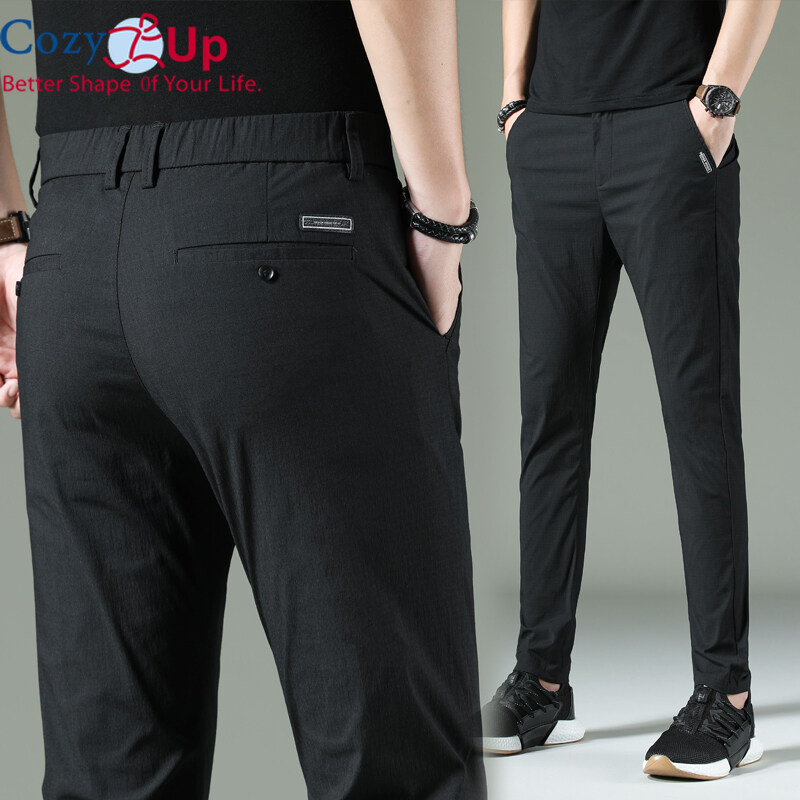 Cozy Up Men Long Trousers Solid Color Casual Straight Cotton Blended Soft Slim Fit