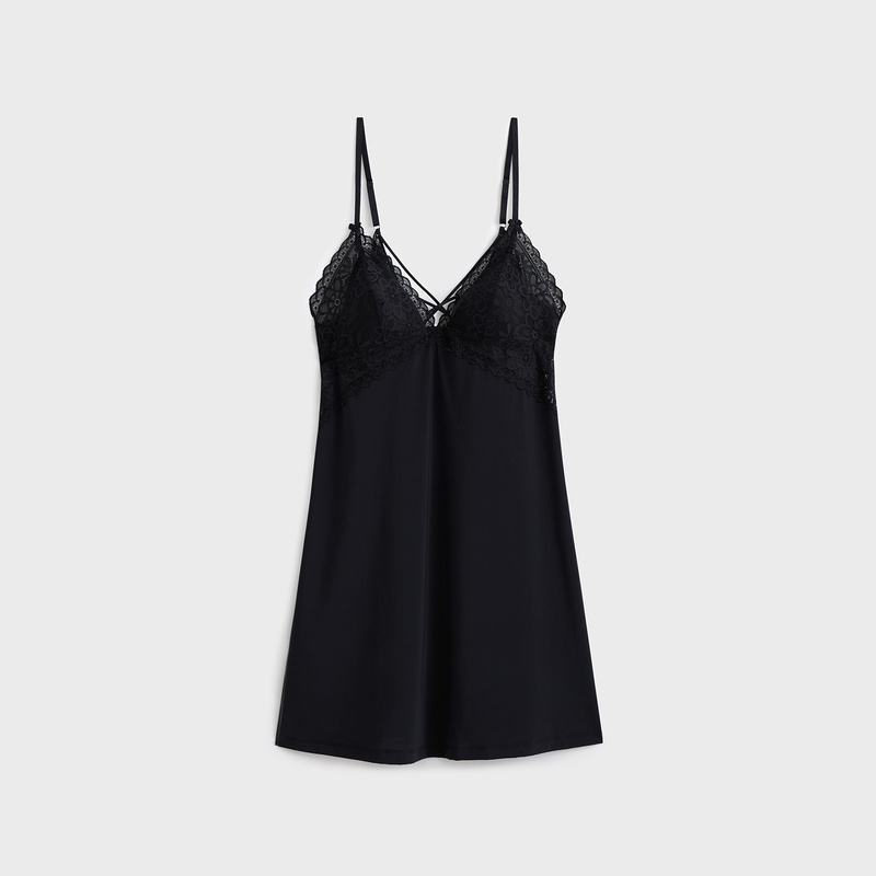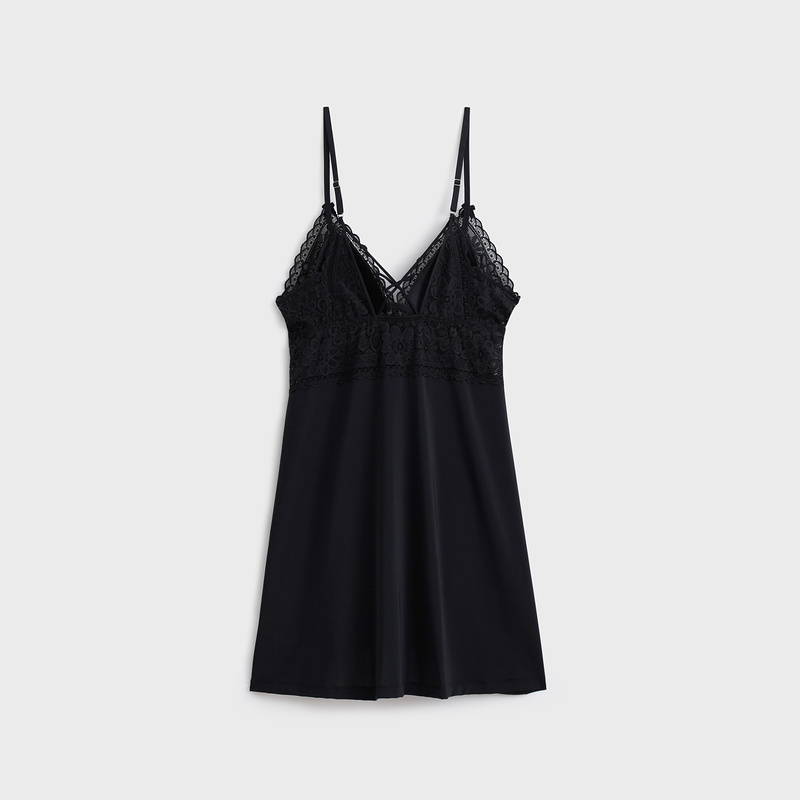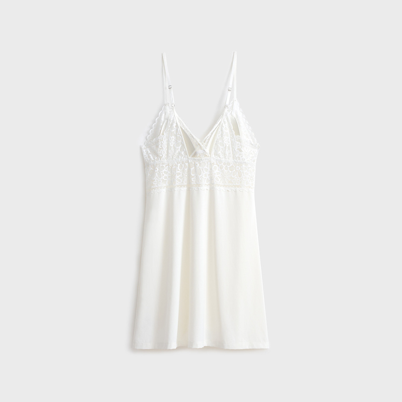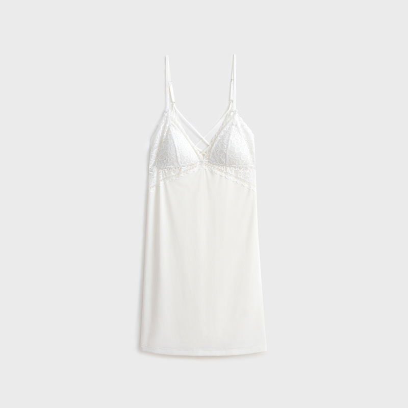 6IXTY8IGHT ALESSIA, Elegant Lace Micro Fabric Light Padded Slip Dress Homewear HW09136