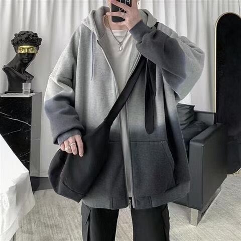 Hong Kong Style Gradient Cardigan Sweater Men's Spring and Autumn Trendy Ins Hooded Top Clothes 2021 New Loose Sports Jacket