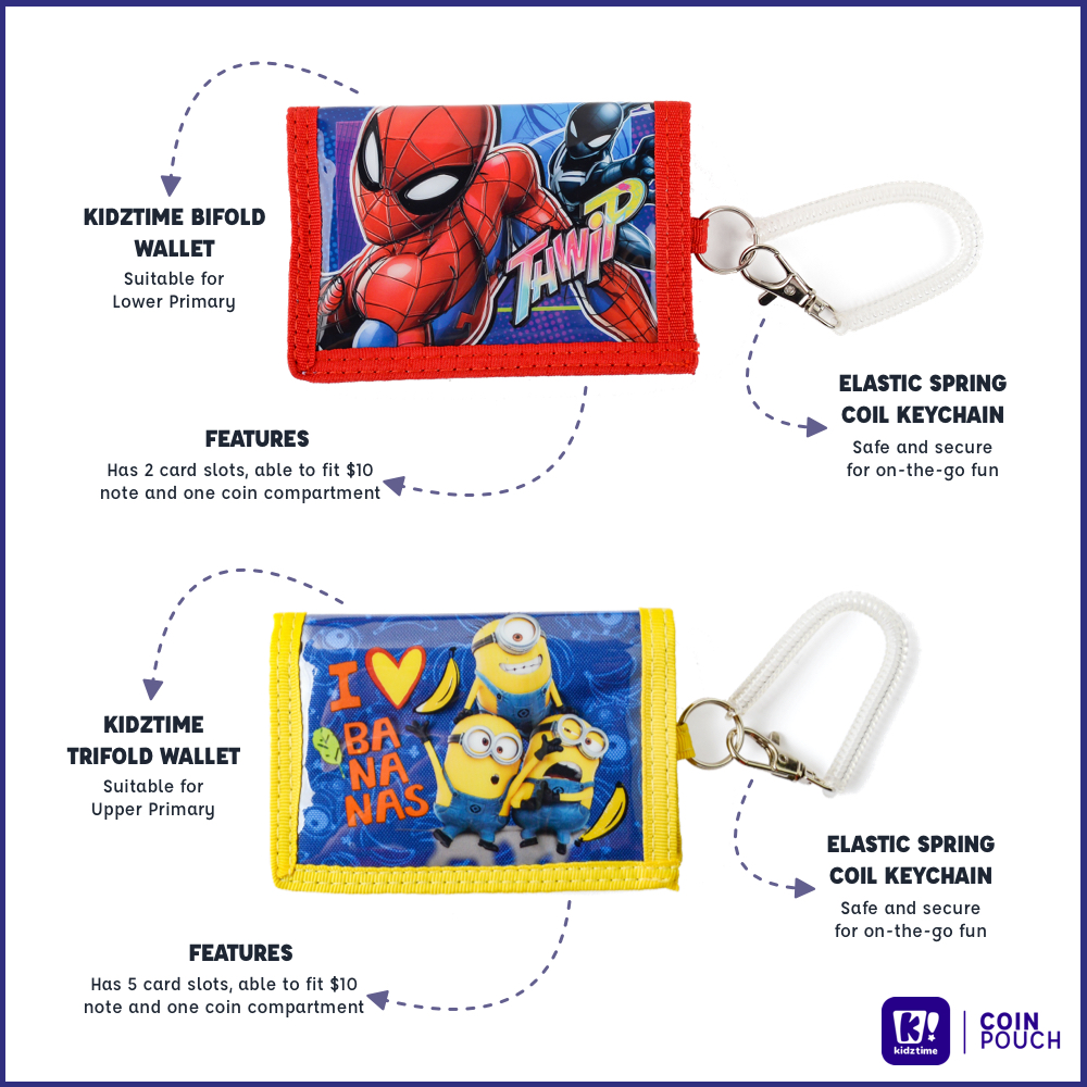 Kidztime Wallet Bifold/Trifold With Coin Compartment Elastic Spring Coil Keychain