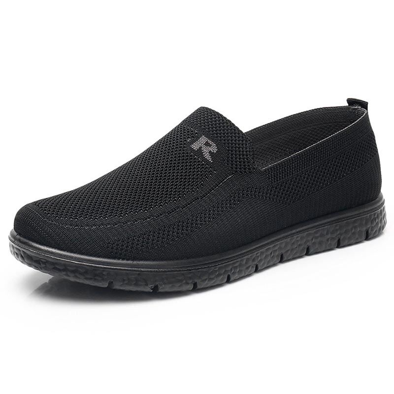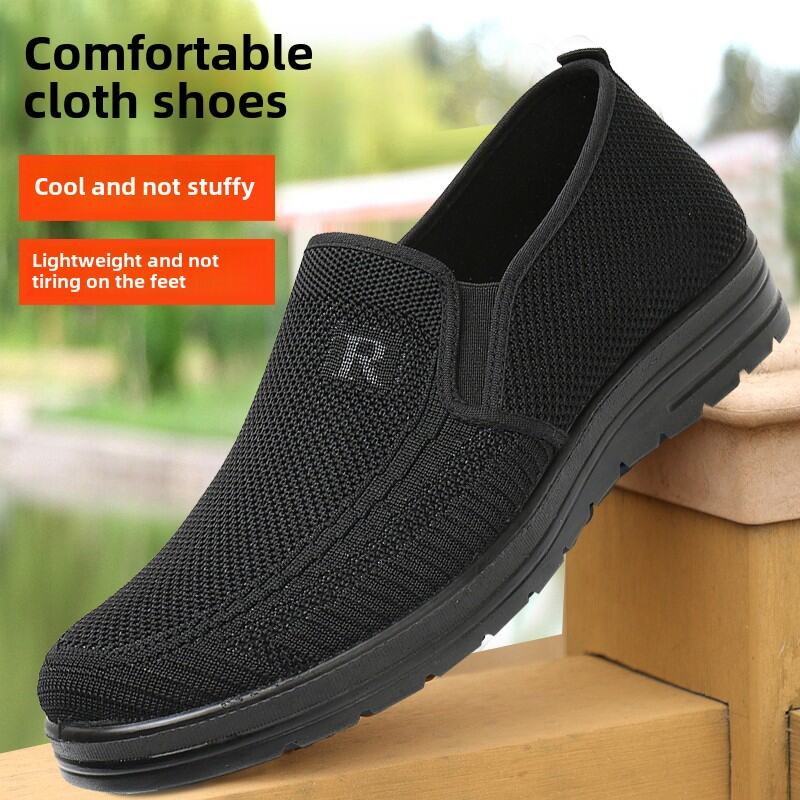 New Arrival Old Beijing Cloth Shoes Men's Spring & Fall Flying Woven Breathable Middle-Aged and Elderly Thick Sole Loose Elderly Oversized Shoes Dad Shoes