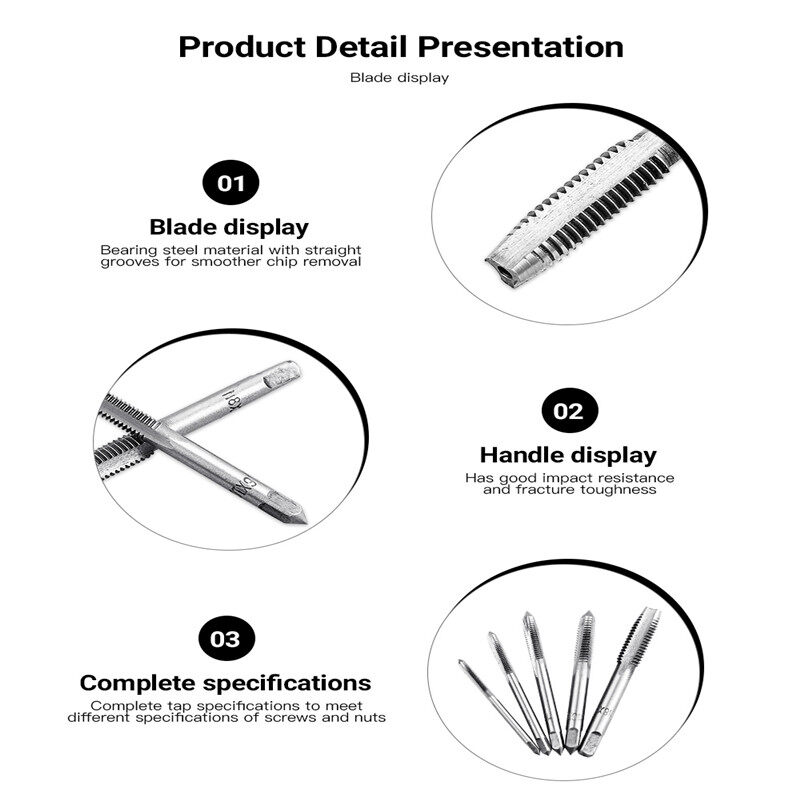 Ashowner 6Pcs T-type Wrench Drill Set Hand Tapping Tools Machine Screw Thread Tap Twist Bit M3 / M4 / M5 / M6 / M8 Tap Set Hand Tool