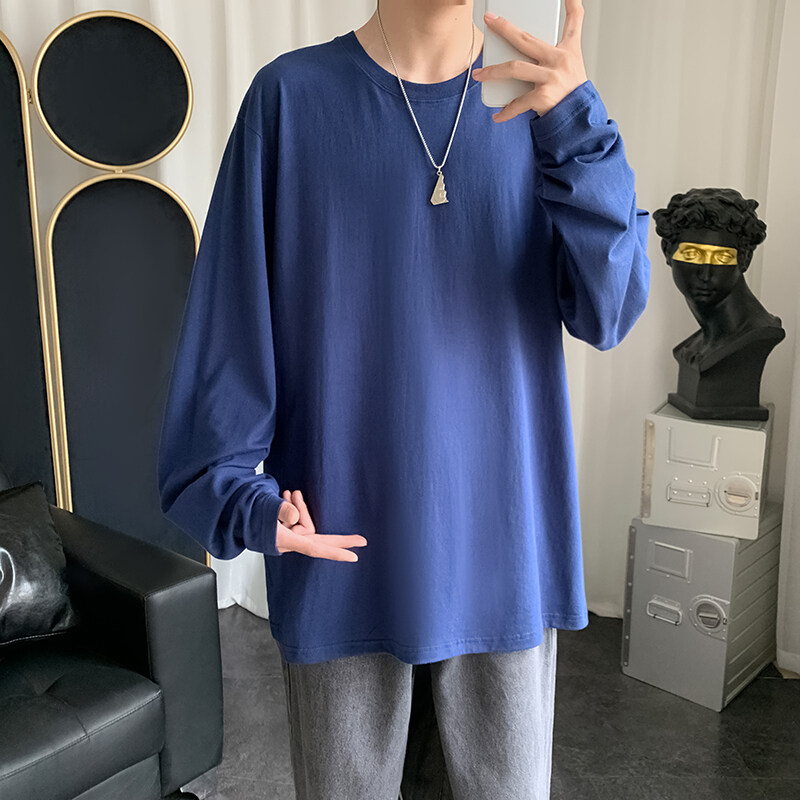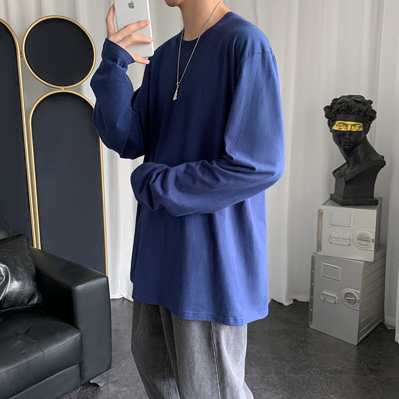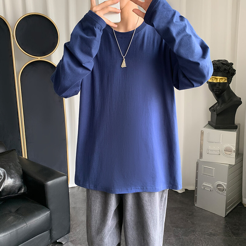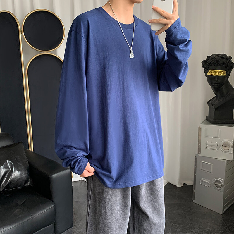 Blue t shirt Men Oversize Korean Style Long Sleeve Fashion Tops Casual Basic Plain t-shirt