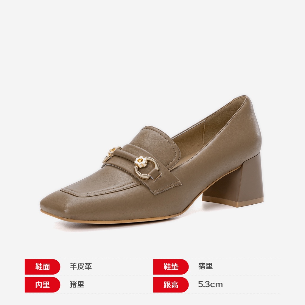 AOKANG Women's Shoes 2022 Autumn New Style Genuine Leather Formal Wear Thick-Soled Square Root Commuter Office