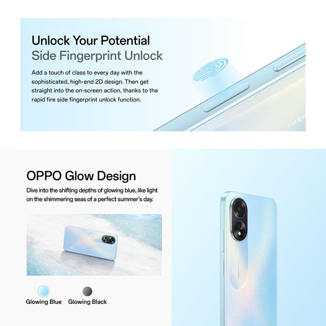 OPPO A18 / 300% Ultra Volume Mode / 90Hz Sunlight Display / 5000mAh Battery / 36-Month Fluency / 2 Years Local Warranty