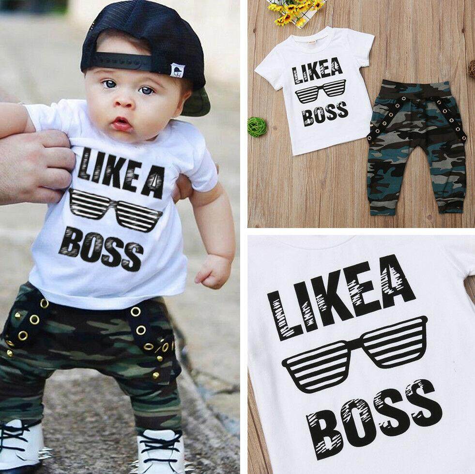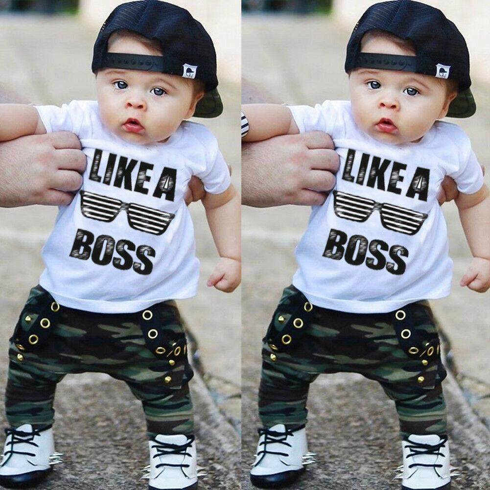 2PCS Toddler Baby Boys Hip Hop Tops T-shirt Camo Pants Outfits Set Clothes