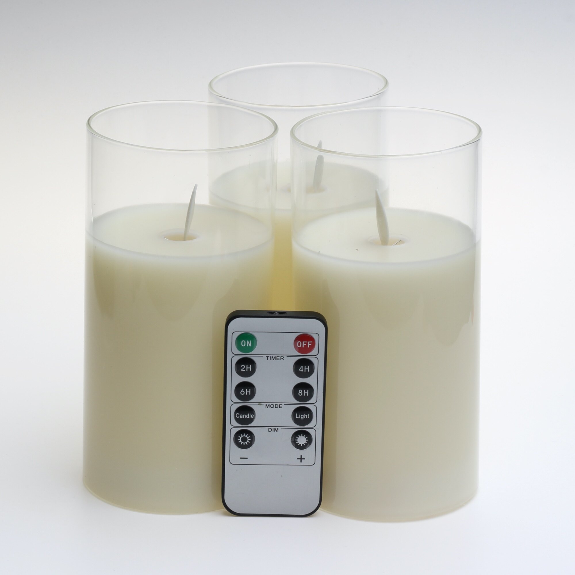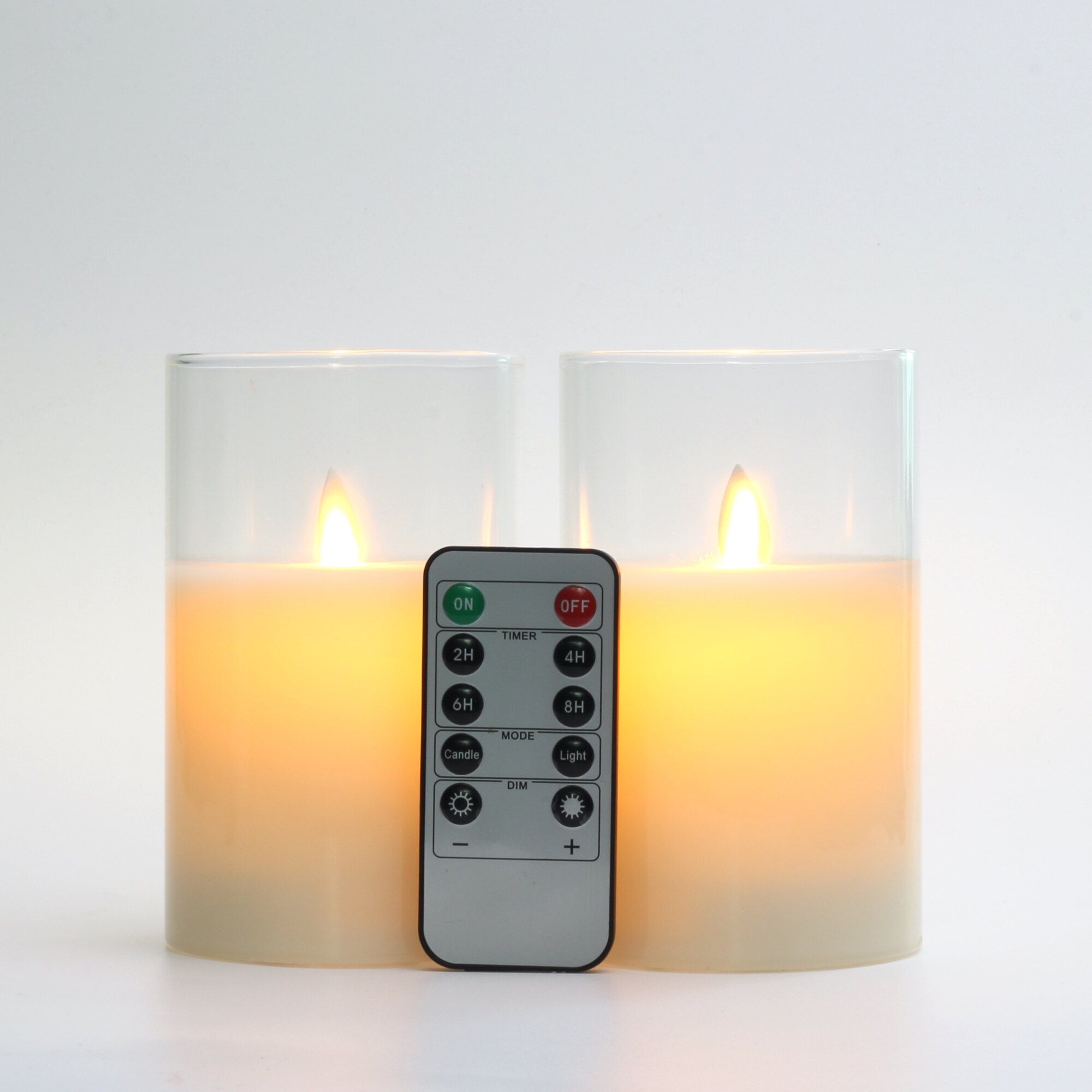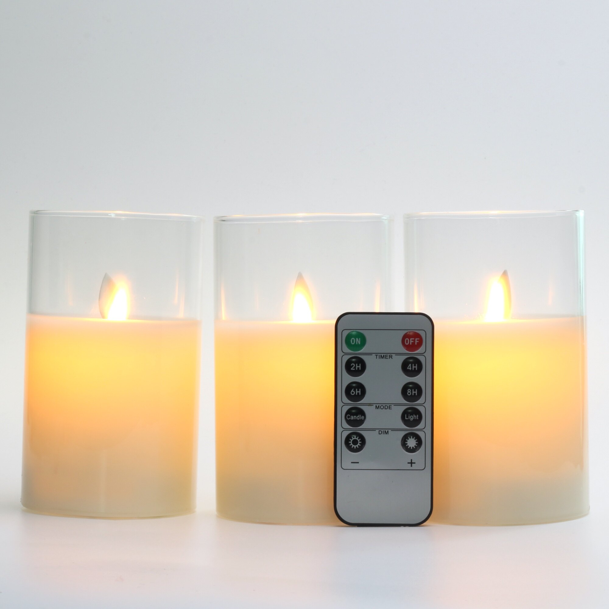 Glass Flameless Candles Set Real Wax Pillars & Moving Flame Wick LED Candles and 10-Key Remote Control with Timer, Battery Operated, Diameter 7.5cm