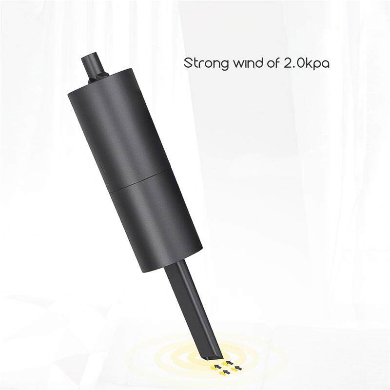 Feature:【3 In 1 Designs】The long and flat air collector cylinder for small stuff cleaning; the air blower cylinder represents strong wind; and the brush for surface cleaning.【Strong Wind Power】Strong power, powerful suction, high rotatory concentric, 2.0kpa powerful suction is permitted.【Long Durability】Built-in 2000mAh large-capacity battery can be charged and used for 1000 times. Can be fast fully charged in 4 hours.【Repeatedly Usable Filter Net】HEPA filter net is detachable for convenient water wash. Can be repeatedly used, eco-friendly and money-saving.【Cordless and Compact Vacuum】Ultra-lightweight and space-saving. You can put it on your desk, car, room, using it anytime, anywhere to clean all kinds of dust, scraps and hair.Easy to use:1) Install the cylinder needed.2) Long press the button for 2 seconds for power on.3) Short press the button for power off.4) Make sure to charge it when the battery is low for convenient use of the next time.Notice:1) The suction will get weak when the electricity is insufficient.2) Clean the mesh filter at least one time per month, it must be cleaned immediately if there is too much dirty.3) The cordless vacuum can't be touch to liquid.Specification:Voltage: DC5VCharging electricity: ≤1APower: ≥ 35WRotary speed: 26000-29000R/MinCharging time: Approx. 20MinSuction: 2.0kpaBattery capacity: 2000mAh*2USB length: 800mm±30mmOutput voltage: 7.4VWorking electricity: 5AItem size: 18.4x6.3cmPackage Content:1 x Vacuum Cleaner1 x Storage bag1 x Air blowing cylinder1 x Air collection cylinder1 x Brush1 x USB cable