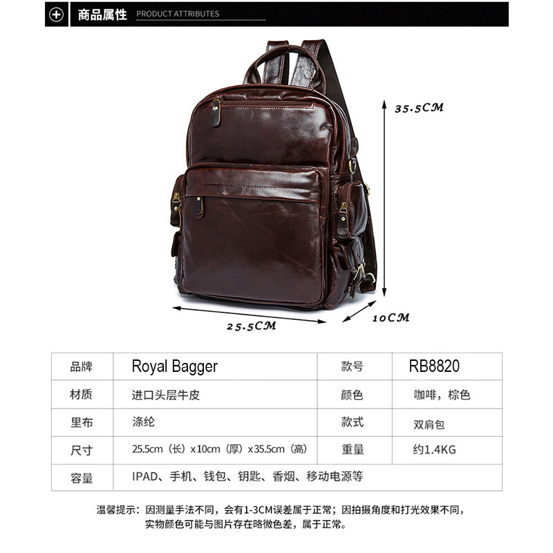 Royal Bagger Genuine Cow Leather Waterproof High Capacity Travel Computer Backpack For Boys Men Outdoor Work Handbag Simple Men's Student Backpacks Hot Sale School Shoulder Bags
